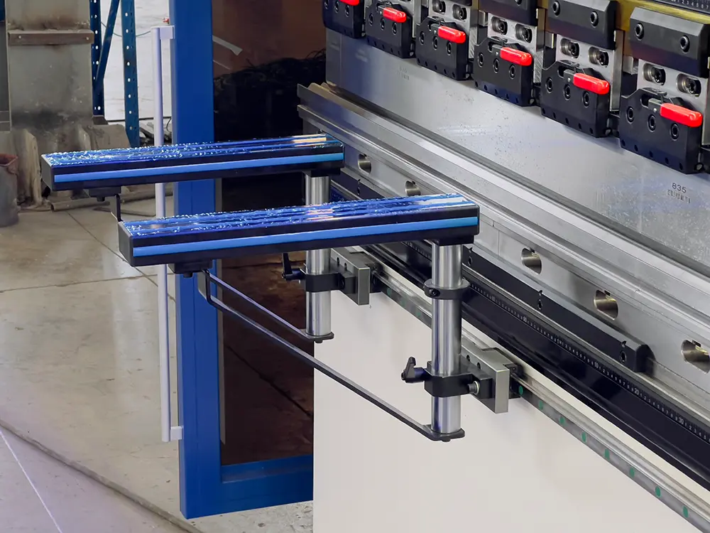 The front support provides a stable platform to hold the metal sheets during bending. It helps prevent the workpiece from sagging or deforming, especially with large sheets.